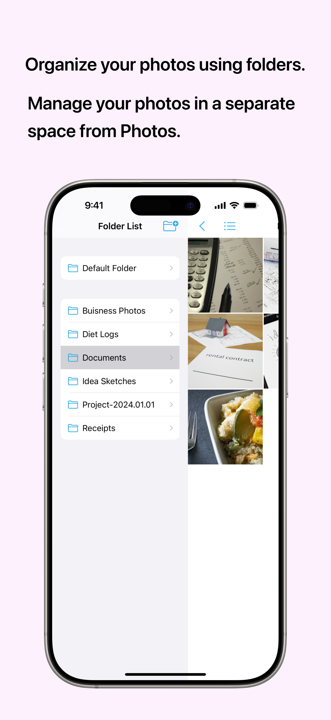 Organize your photos into folders and manage them easily.