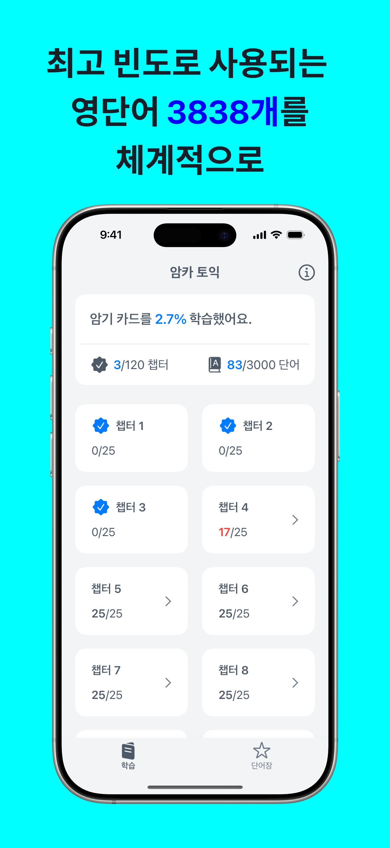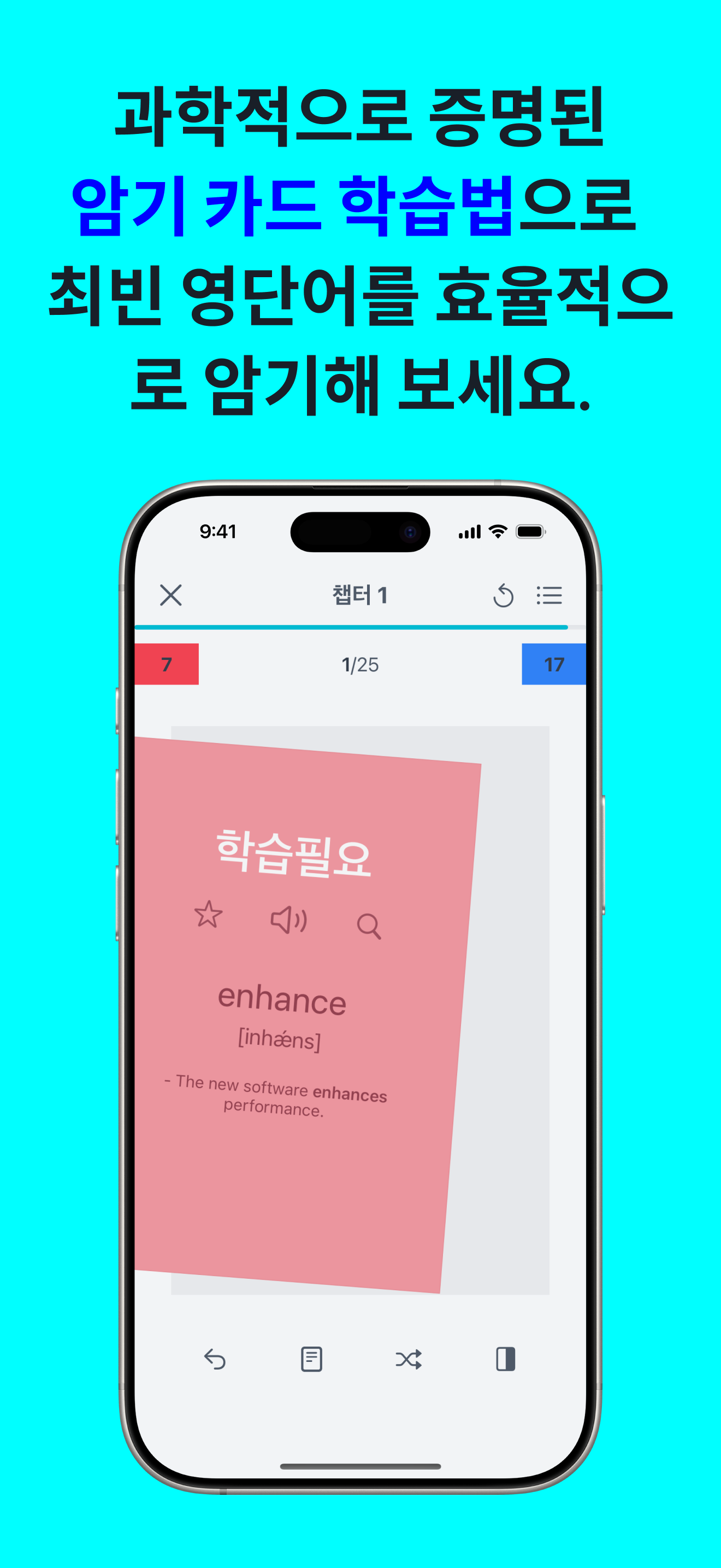 과학적으로 증명된 라이트너 단어카드 학습법으로 최빈 영단어를 빠르게 학습하실 수 있습니다