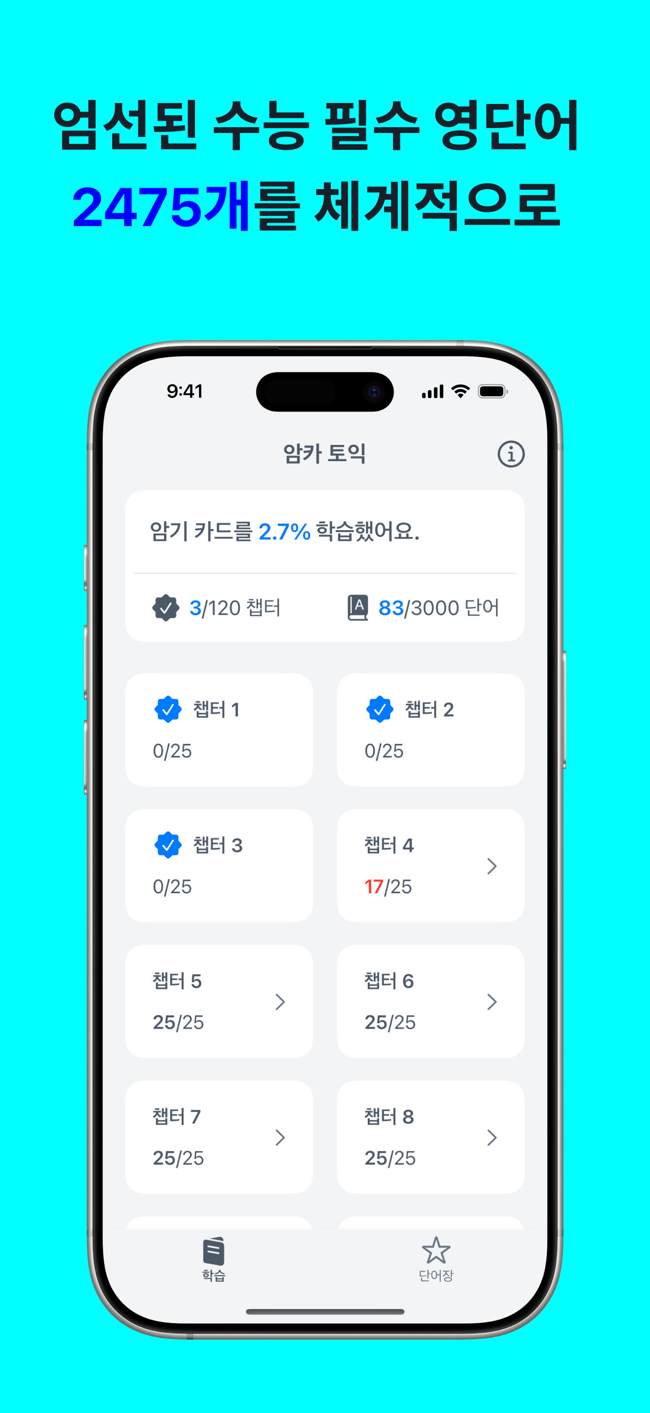 '암카 수능 영단어'로 수능 영어단어를 효율적으로 암기학습 해보세요.
